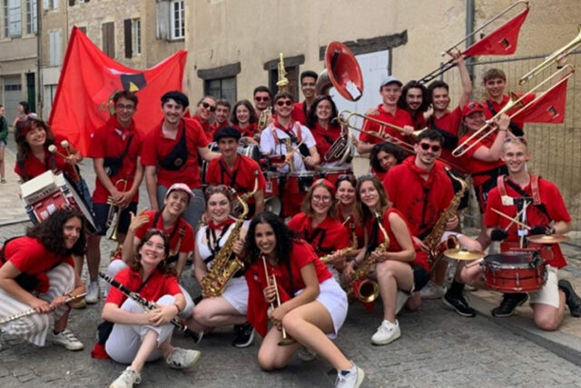 Groupe de musiciens aux instruments de la famille des gros cuivres